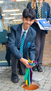 As part of the celebrations, students, staff and construction partner Bauvill buried a time capsule curated by the student council. It includes a programme from the recent 9 to 5 musical, a £5 note featuring the King, and examples of the current Academy uniform.