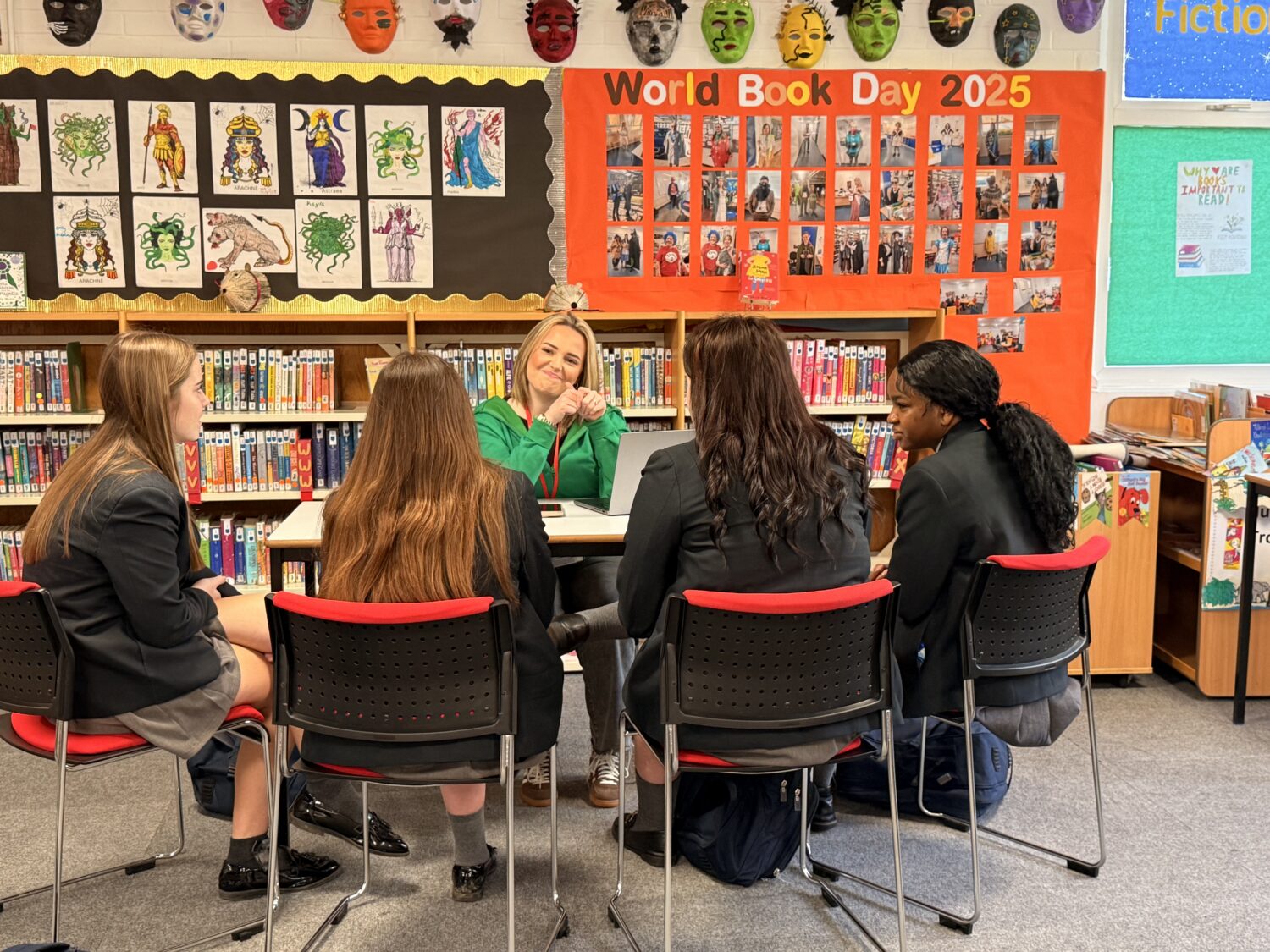 Thursday was another eventful day where we held a careers fair for KS3/KS4/KS5. We were joined by individuals with careers that had literacy embedded within their roles. We greeted Courtney Wilkins from compare and recycle who works with marketing and social media, Erica Snow who is the head of campaign for the charity Heart of Kent Hospice, Fabio Antoncini a project manager for Greystar Developments, Jaye from Rochester Literacy Festival and Belinda Hill from Medway Libraries. The pupils were spoilt for choice with such a variety of roles to choose from and I was so proud of how our students conducted themselves, asking our visitors some really great questions and showing interest in these particular career paths.
